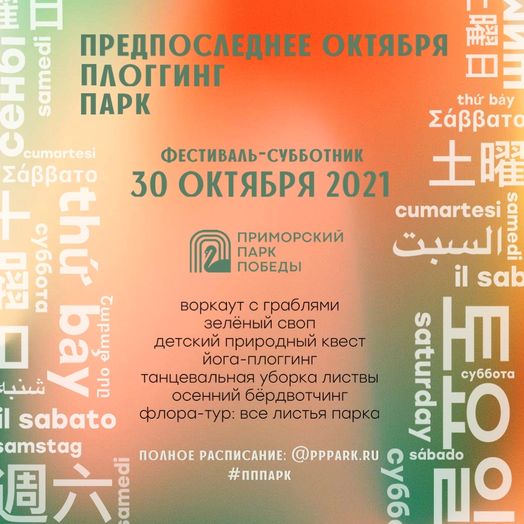 Мы иронично интерпретировали советский праздник «день труда» (фестиваль получил название «Предпоследнее октября. Плоггинг. Парк») и изменили его концепцию, сохранив светлый посыл. Традицию общей субботней уборки разнообразили плоггинг, детское научное исследование, зеленый своп и не только — делимся расписанием!